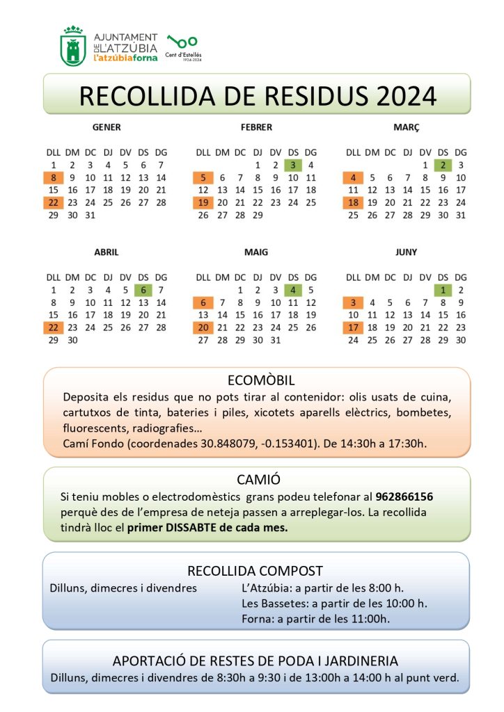 Calendari recollida de residus 2024 (1er semestre) – canvi d’horari de l’ecoparc mòbil 2 Abr 2024 A partir del 22 d’abril l’horari de l’ecoparc mòbil serà de 14:30 h a 17:30 h. Enviar comentario Cancelar la respuestaTu dirección de correo electrónico no será publicada. Los campos obligatorios están marcados con *Comentario Nombre * Correo electrónico * Web Guarda mi nombre, correo electrónico y web en este navegador para la próxima vez que comente. Δ