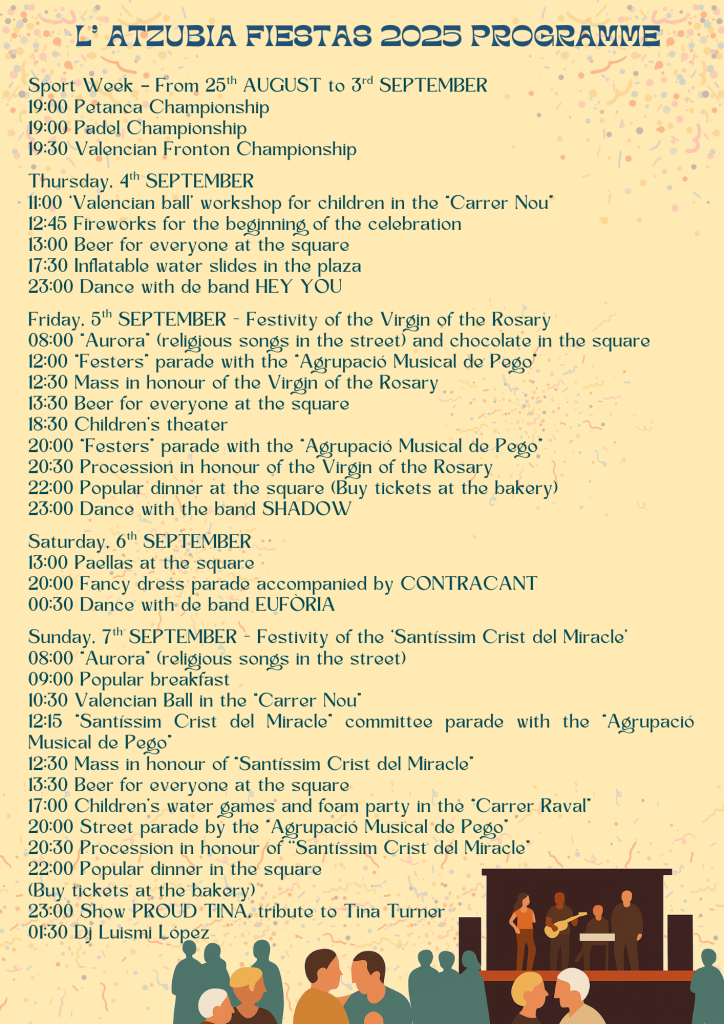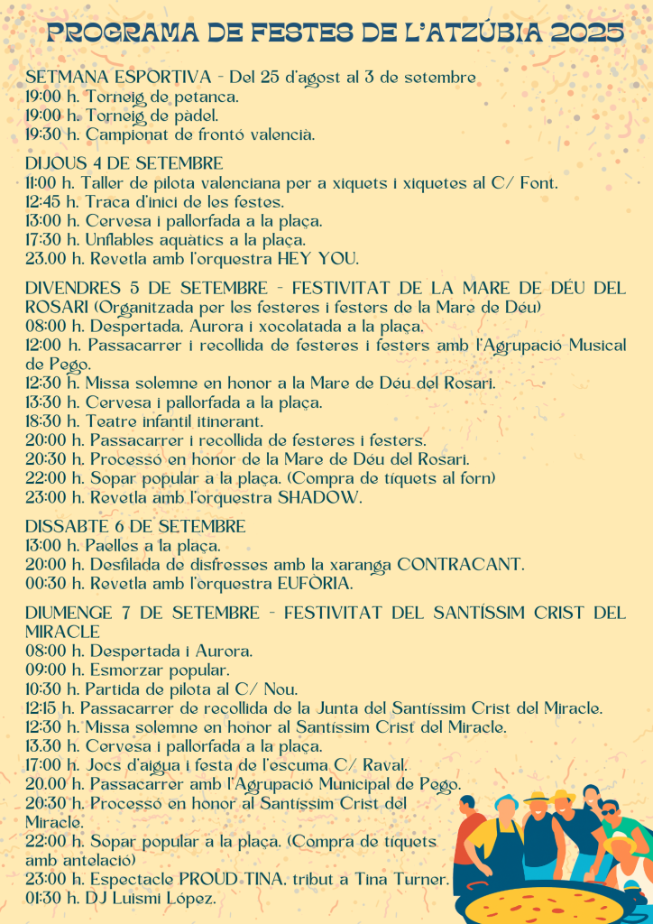 Festes de l’Atzúbia 2025 – ACTUALITZACIO! 18 Ago 2025 Enviar comentario Cancelar la respuestaTu dirección de correo electrónico no será publicada. Los campos obligatorios están marcados con *Comentario Nombre * Correo electrónico * Web Guarda mi nombre, correo electrónico y web en este navegador para la próxima vez que comente. Δ